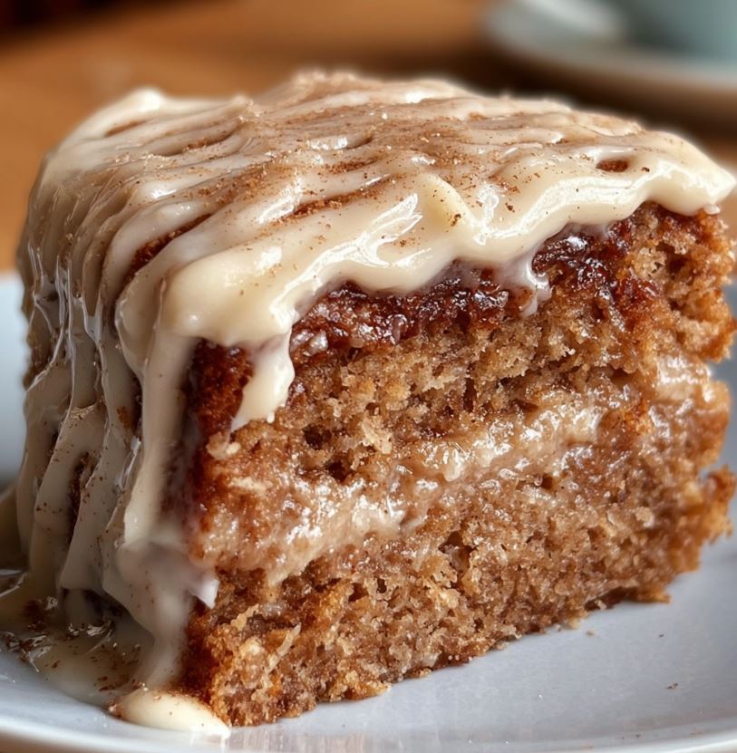 Generously spread or drizzle the frosting over the cooled cake. Finish with a light dusting of extra cinnamon if desired.