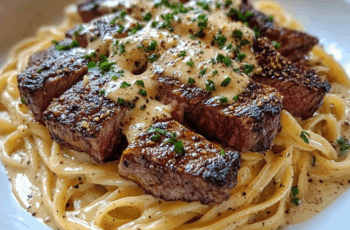 Cajun Garlic Butter Steak over Creamy Parmesan Linguine