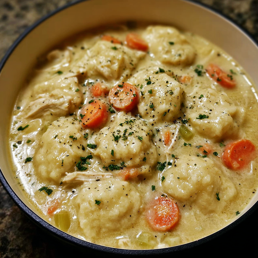 Pull off one inch pieces of the dough and drop into the soup. Cover with a lid and allow to simmer for 15-20 minutes, until the dumplings are floating at the top of the soup.