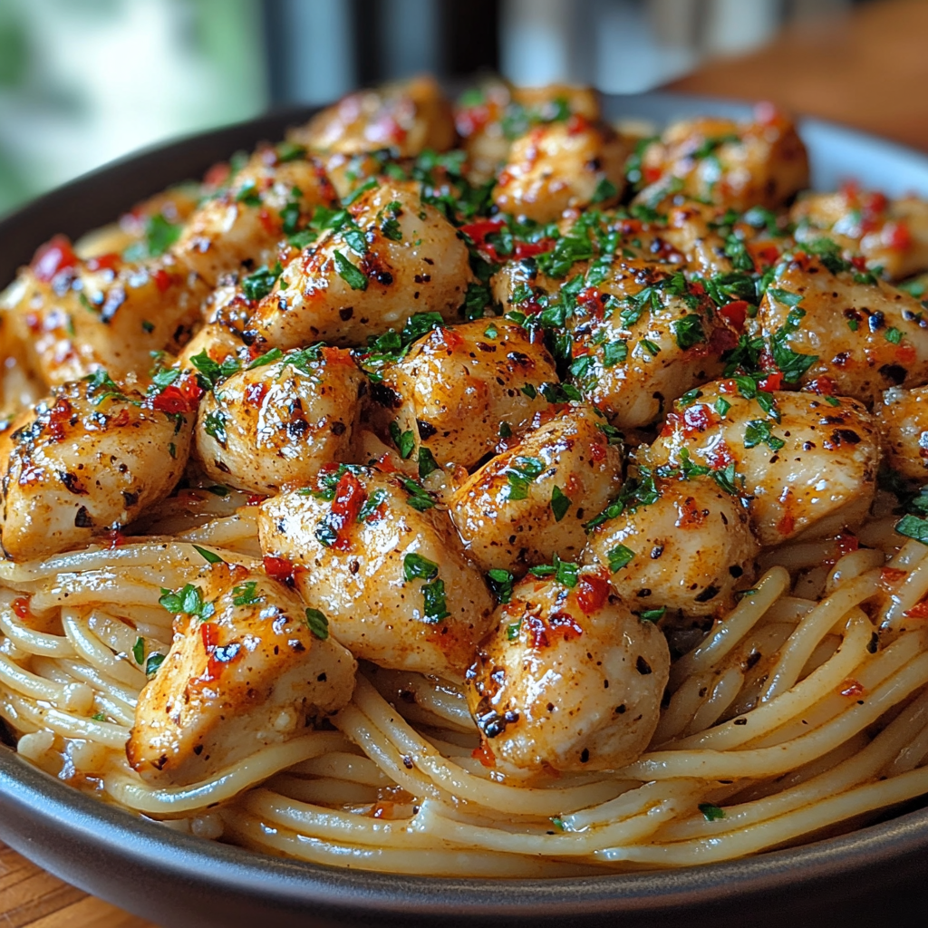 Combine Everything: Toss in the cooked chicken and pasta, coating evenly. Stir in Parmesan, parsley, and lemon juice. If the sauce is too thick, loosen it with reserved pasta water.