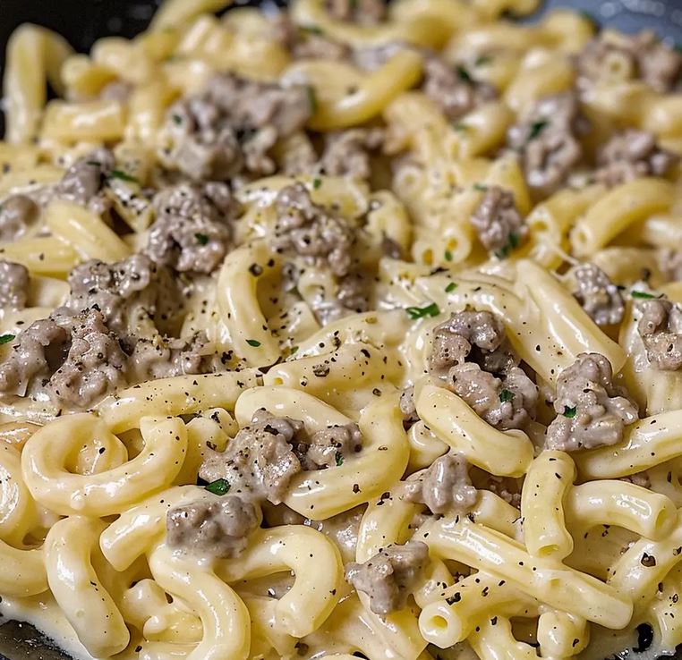 Creamy Ground Beef Alfredo Pasta