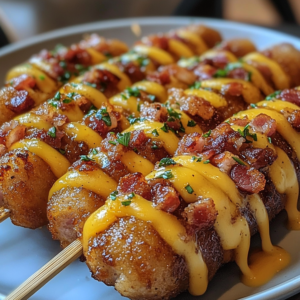 Dip each bacon-wrapped log into the batter, coating it completely. Carefully lower into hot oil and fry 3–5 minutes, turning if needed, until golden brown and crispy.
