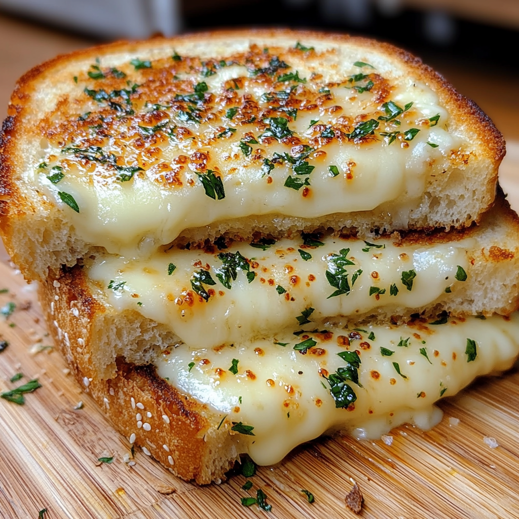 This recipe combines the best of garlic bread and grilled cheese for an irresistible, cozy sandwich! 🧀🍞