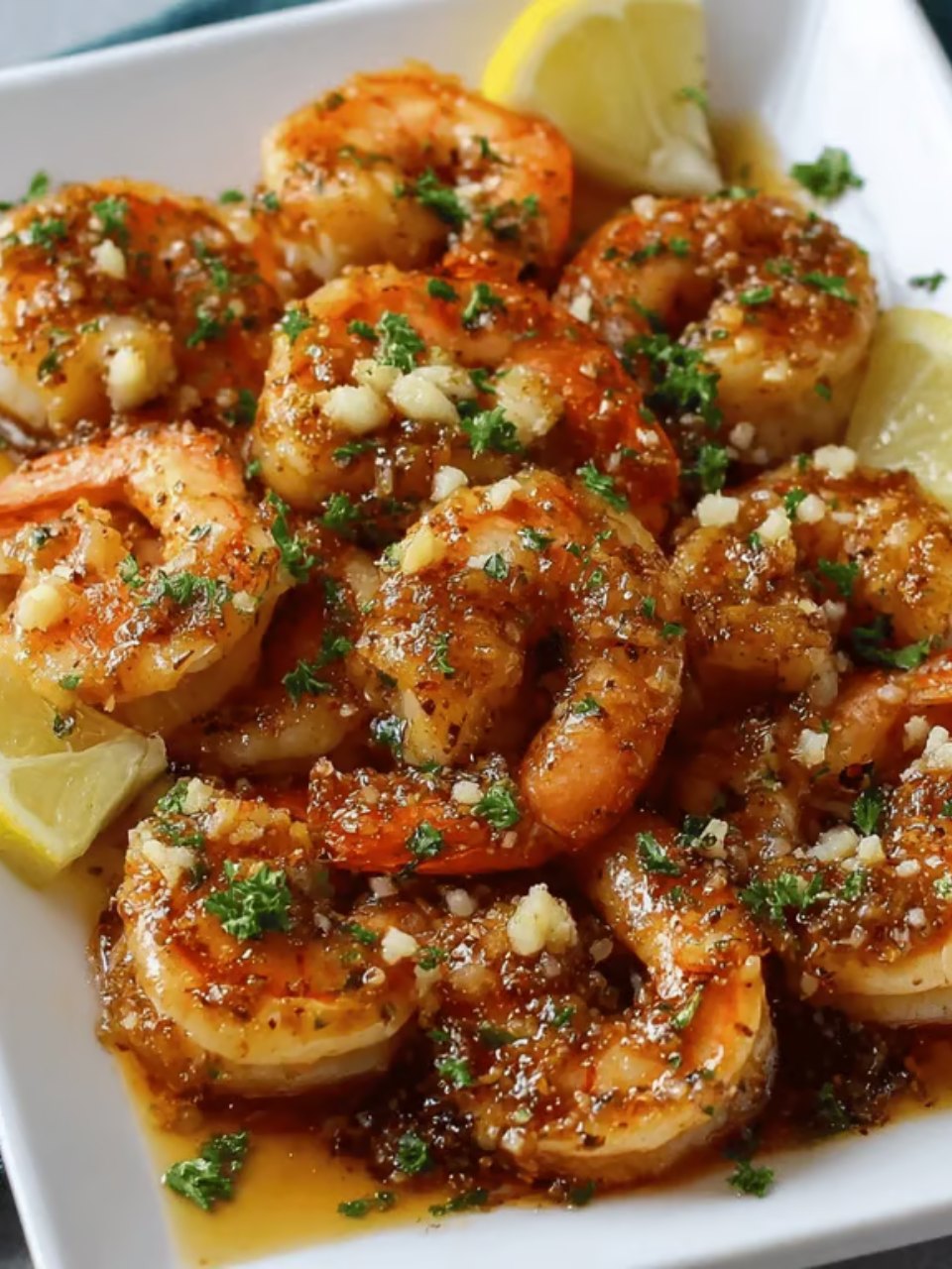 Remove pan from heat. Drizzle shrimp with lemon juice, toss gently to combine, and top with fresh parsley if desired. Spoon garlic butter sauce over shrimp and serve immediately.
