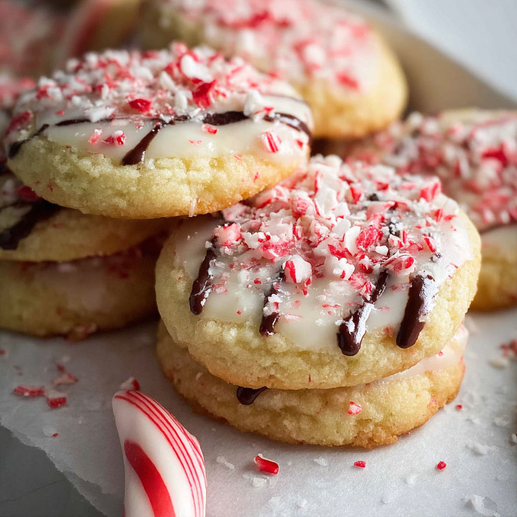 These festive cookies are soft, chewy, and bursting with peppermint flavor, featuring chunks of crushed candy canes. The dough chills before baking, ensuring perfect thickness and rich flavor. Notes on substitutions are included below.