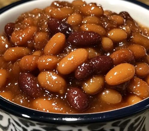 In a greased 1-quart baking dish, combine sautéed onion, crumbled bacon, beef and beans, root beer, barbecue sauce, and hot sauce. Stir well.