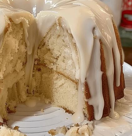Drizzle the glaze generously over the cooled pound cake, letting it drip down the sides for a beautiful finish. Allow the glaze to set before slicing.