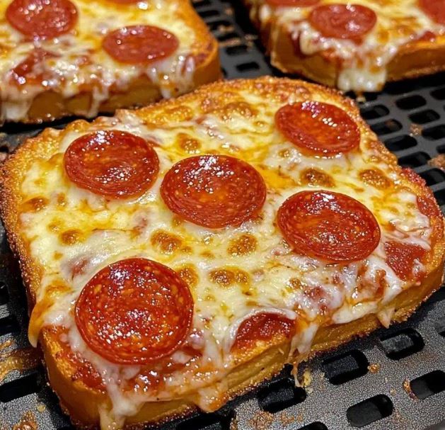 Air fry at 360°F for 3 minutes to lightly toast the bread. You want it golden but not too crispy since we’re adding more cooking time later.